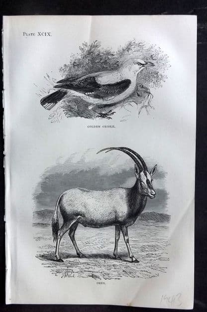 Beeton 1870 Antique Print. Golden Oriole, Oryx 99