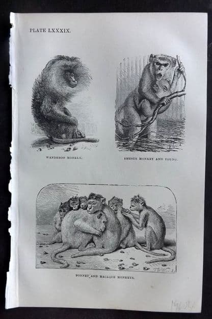 Beeton 1870 Antique Print. Wanderoo, Rhesus, Bonnet & Macaque Monkey 89
