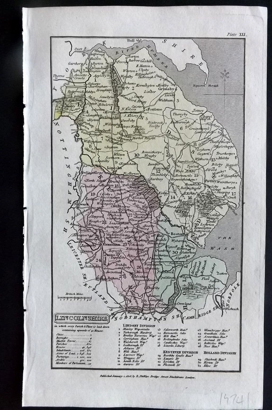 Antique Copper Engraved Map Published 1808 by Richard Philips, London for "A Topographical Dictionary of the United Kingdom" First Edition by Benjamin Pitts Capper. Fine hand colour as issued.
