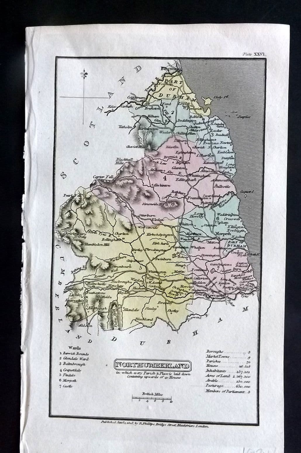 Antique Copper Engraved Map Published 1808 by Richard Philips, London for "A Topographical Dictionary of the United Kingdom" First Edition by Benjamin Pitts Capper. Fine hand colour as issued.