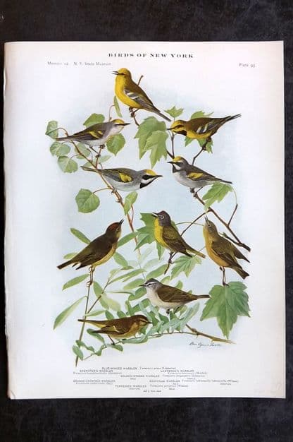 Antique Collotype Published 1909-15, Albany for "The Birds of New York" by Elon Howard Eaton. Illustrated by Louis Agassiz Fuertes. Part of the New York State Museum Annual Report Series.