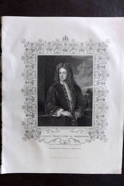 Gaspey C1860 Antique Portrait Print. Charles Talbot, Duke of Shrewsbury