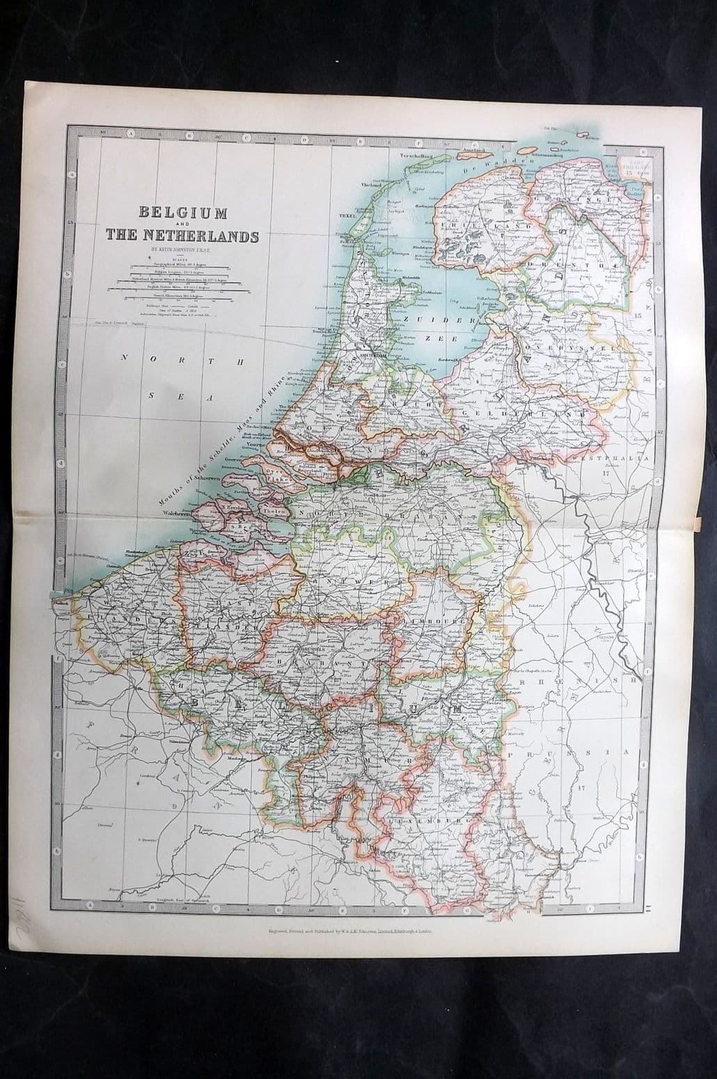 Johnston 1906 Antique Map. Belgium and The Netherlands