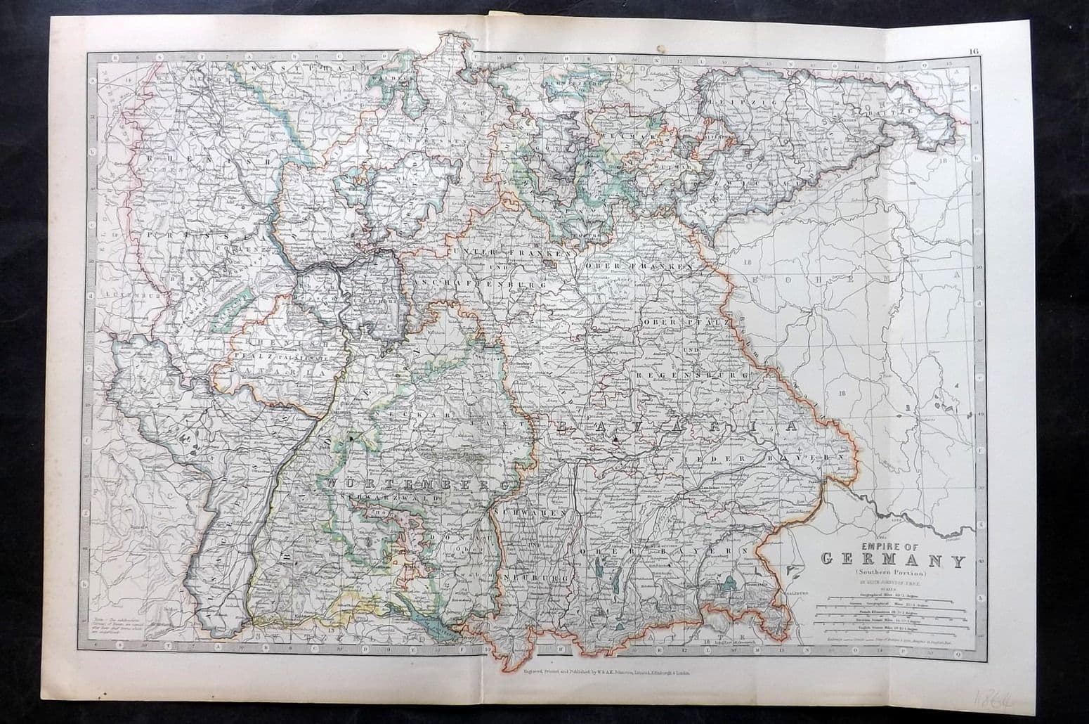 Antique Folio Steel Engraved Map Published 1906, Edinburgh & London for "The Handy Atlas of Modern Geography" by Alexander Keith Johnston and G. H. Johnston. Vertical folds as published.