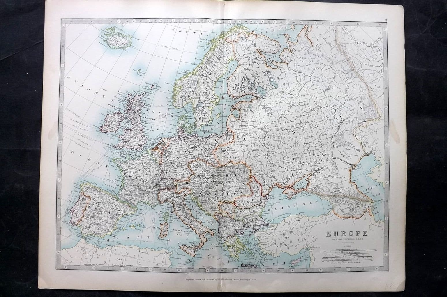 Antique Folio Steel Engraved Map Published 1906, Edinburgh & London for "The Handy Atlas of Modern Geography" by Alexander Keith Johnston and G. H. Johnston. Centre fold as published.