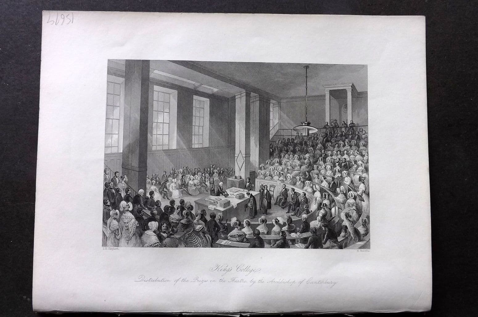 London Interiors 1844 Print. Kings College. Distribution of the Prizes in the Theatre