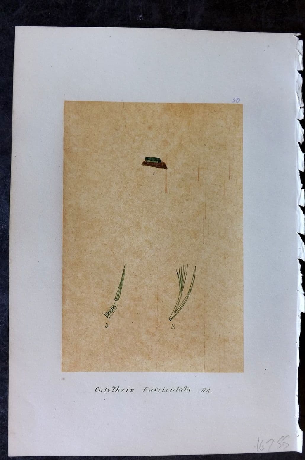 Antique Pen, Ink and/or Watercolour Made in C1875, England for a privately created work on British Seaweeds by an unknown but Gifted Artist. Each drawing with accompanying descriptive manuscript plate, also featuring a small chromolithographed scrap for decorative purposes. On Chine-Colle type paper on heavier Wove.
