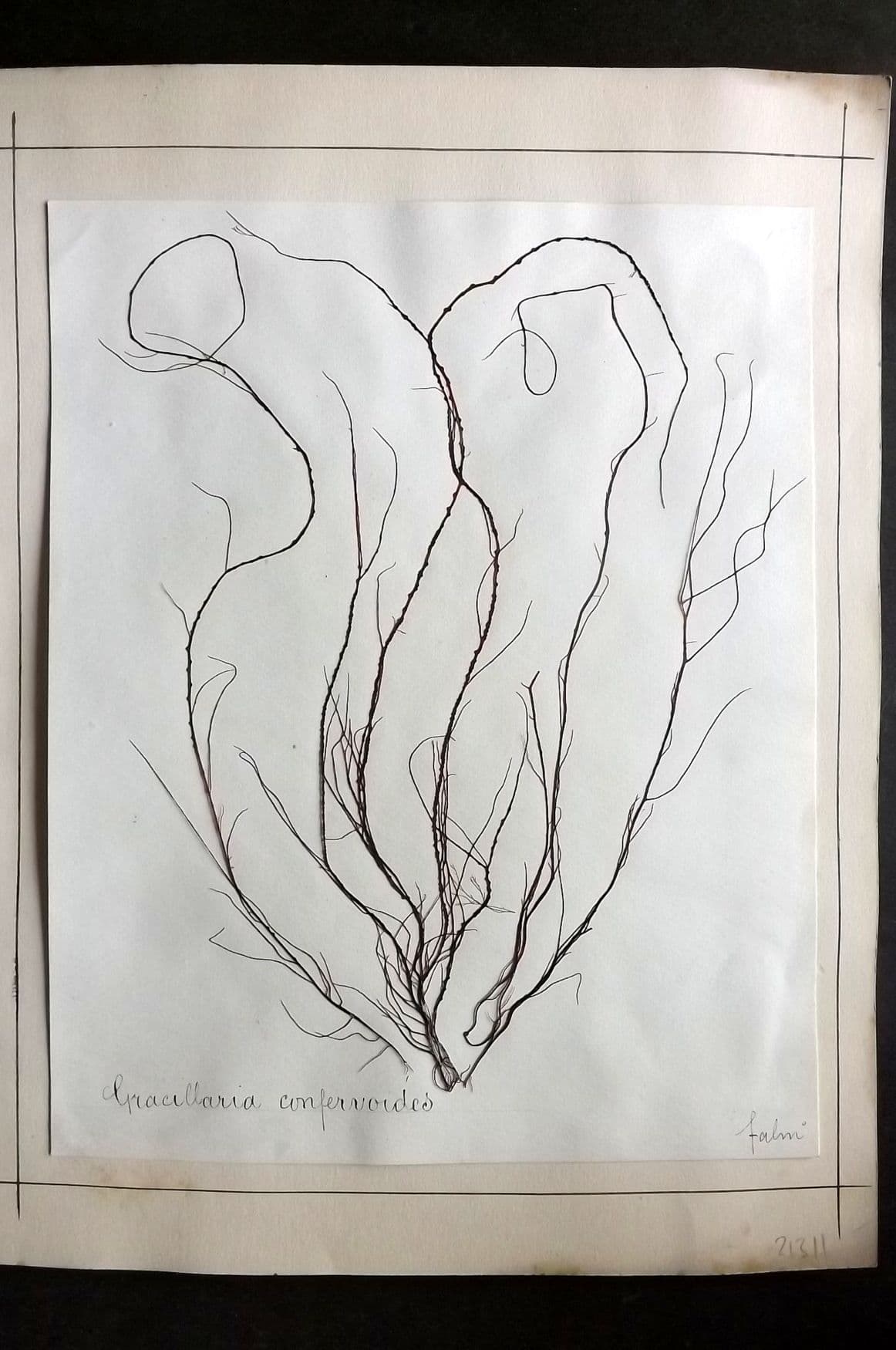 Pressed Seaweed Sample compiled in the 1880's by Edwin Weeler (1831-1909) of Bristol. A Famous Homeopath from a homeopathic family (His brother, Charles was President of the British Homeopathic Society) The samples were collected in the 1880's and then presented to his friends or clients "Mr and Mrs Bennett" in 1886. The samples were collected mosty on the South Coast of England including Torquay, Falmouth, Exmouth and other locations. Also Scotland. Each sample is mounted on wove paper and titled in old ink, listing the species and usually listing the date and location of where it was collected. Mounted back to back on Album Leaf. High Standard Herbarium and the vast majority well preserved with no loss.