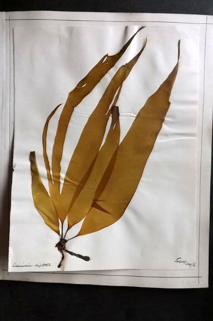 Pressed Seaweed Sample compiled in the 1880's by Edwin Weeler (1831-1909) of Bristol. A Famous Homeopath from a homeopathic family (His brother, Charles was President of the British Homeopathic Society) The samples were collected in the 1880's and then presented to his friends or clients "Mr and Mrs Bennett" in 1886. The samples were collected mosty on the South Coast of England including Torquay, Falmouth, Exmouth and other locations. Also Scotland. Each sample is mounted on wove paper and titled in old ink, listing the species and usually listing the date and location of where it was collected. Mounted back to back on Album Leaf. High Standard Herbarium and the vast majority well preserved with no loss.