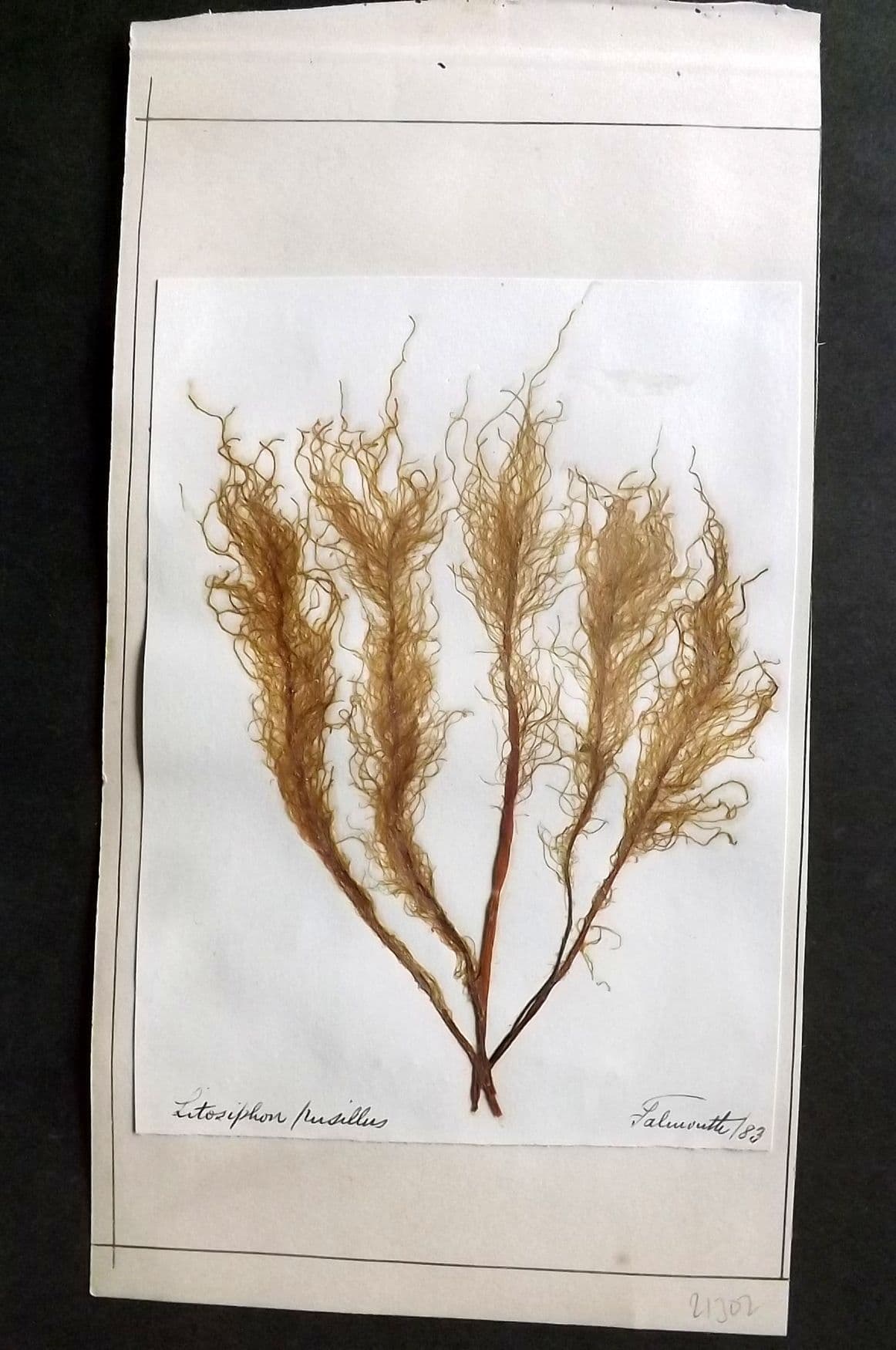 Pressed Seaweed Sample compiled in the 1880's by Edwin Weeler (1831-1909) of Bristol. A Famous Homeopath from a homeopathic family (His brother, Charles was President of the British Homeopathic Society) The samples were collected in the 1880's and then presented to his friends or clients "Mr and Mrs Bennett" in 1886. The samples were collected mosty on the South Coast of England including Torquay, Falmouth, Exmouth and other locations. Also Scotland. Each sample is mounted on wove paper and titled in old ink, listing the species and usually listing the date and location of where it was collected. Mounted back to back on Album Leaf. High Standard Herbarium and the vast majority well preserved with no loss.