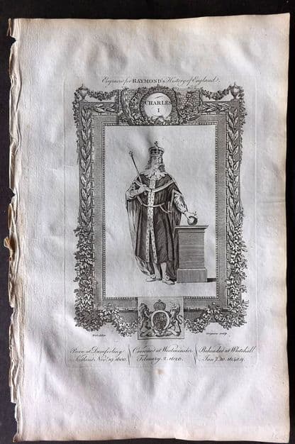Antique Folio Copper Plate Published 1787, London for "A New, Universal and Impartial History of England" also titled "Raymond's History of England" by George Frederick Raymond.