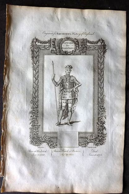 Raymond 1787 Folio Portrait Print. Edward the Black Prince
