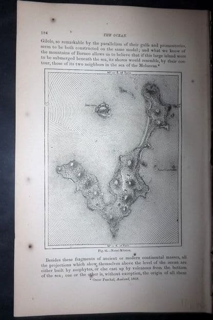 Antique Wood Engraved Map Published 1873, New York for "The Ocean, Atmosphere and Life" by Elisee Reclus. Text and/or illustrations to the reverse.