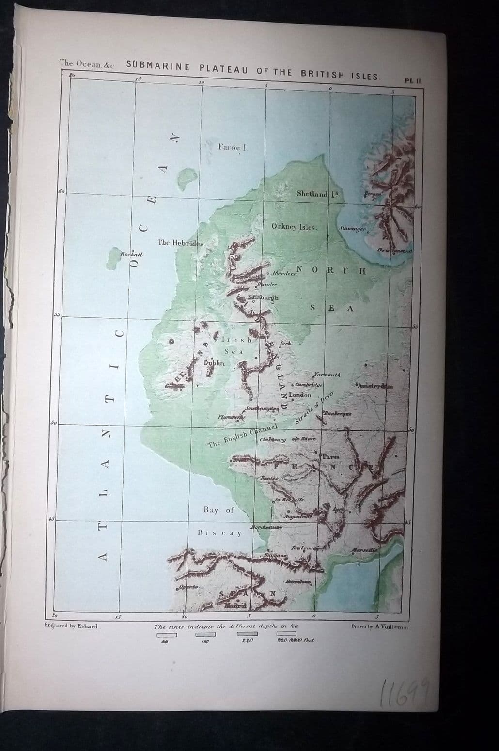 Antique Lithograph Map Published 1873, New York for "The Ocean, Atmosphere and Life" by Elisee Reclus.