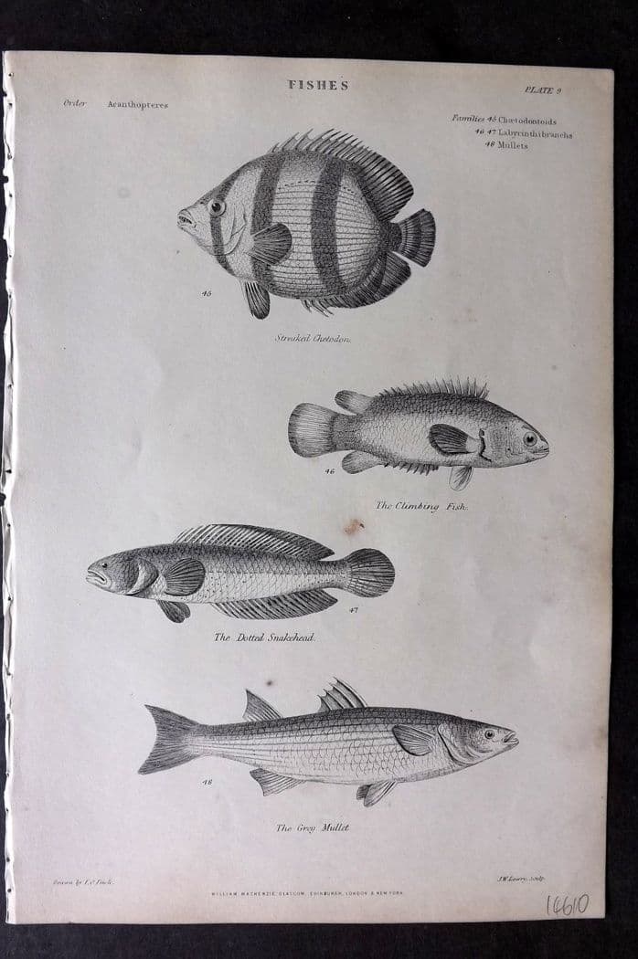Richardson 1862 Print. Chetodon, Climbing Fish, Snakehead, Grey Mullet 09